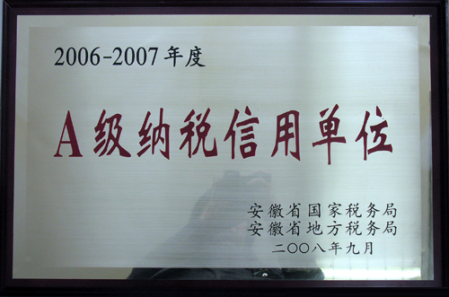 级纳税信用单位”称号,日前受到安徽省国家税务局和安徽省地方税务局的命名表彰。