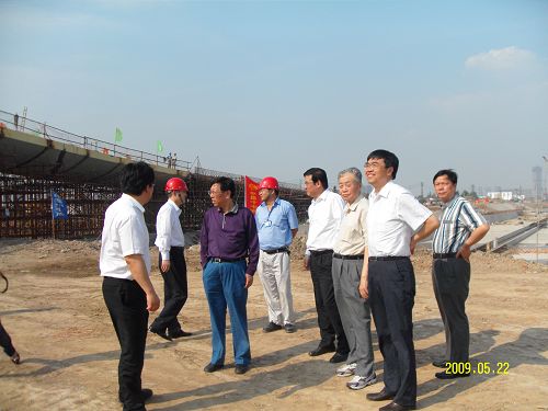多位董事认真视察了滨江大道淮河路NE定向匝道桥钢箱梁段、下沉式地道底板、侧墙、路面二灰碎石基层等项目的施工,他们对滨江大道1.1标的工程质量、进度、安全和施工现场的文明施工给予充分肯定。