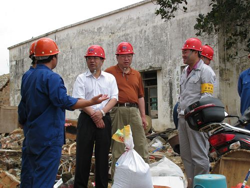 康董事长深入拆除工程施工现场,与一线工人亲切交谈,在详细了解了现场拆除工程进度、文明施工、安全的情况后,对十七冶湛江项目部所做的工作给予了充分的肯定,他要求十七冶湛江钢铁项目部要树立公司在湛江钢铁工程项目的良好形象,加强项目上的企业文化建设,在确保工程安全的情况下创出十七冶品牌。