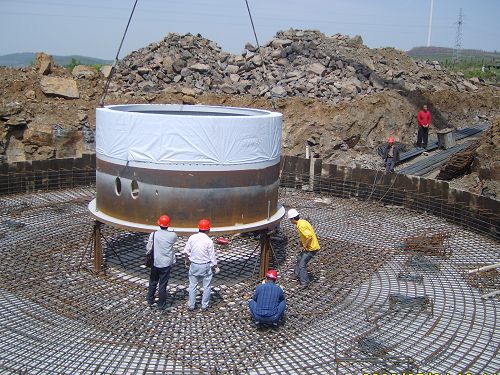 风电公司本次承担的3台风机基础和1210米长的道路施工,工作量为165.8万元。该基础的直径为18.5米,厚度为3米,每台基础的钢筋量为35.96吨,混凝土量达442立方米.