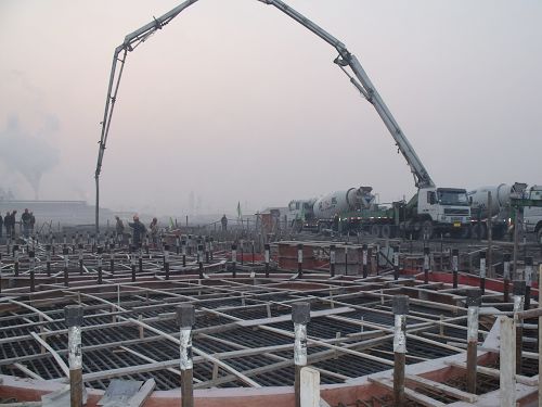 1月17日7:18分,伴随着爆竹声响, 两台砼泵车在长江钢铁技改项目炼铁工程1#热风炉基础上空轻舒长臂,将热气腾腾的砼输送到热风炉基槽中。1#热风炉基础是长江钢铁技改项目炼铁工程浇注的第一座大体积砼基础,这为后序热风炉炉壳的安装奠定了基础。