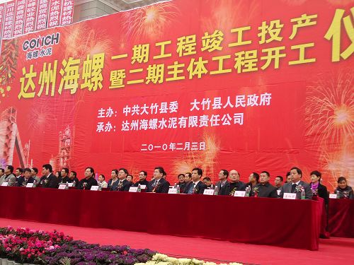 达州海螺一期工程是十七冶在川渝地区竣工投产的第一条水泥熟料生产线,自2008年12月底开工以来,十七冶水泥工程公司经过一年多艰苦不懈的努力,克服地质复杂、物资设备难进场等重重困难,以优质、高效回报业主,确保该工程如期竣工。典礼上,达州市领导对工程进度和质量给予了充分的肯定,业主单位也给予了高度评价。