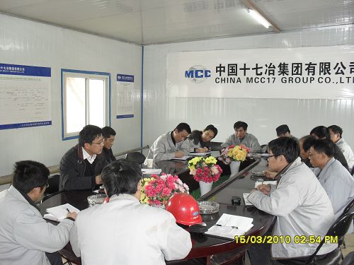 315下午,十七冶副总经理喻世功在机电公司经理唐克斌的陪同下,视察了太钢冶金除尘灰资源化工制砖工程工地。同时在项目工地召开了参战单位负责人和项目部管理人员会议。