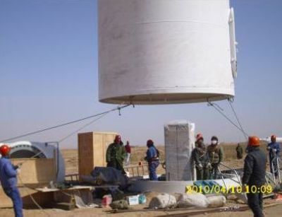 410上午958分,在350t吊车的轰鸣声和欢快的鞭炮声中,由中国十七冶风电公司承建的金州百灵庙风电场54台风电机组安装工程顺利开工。