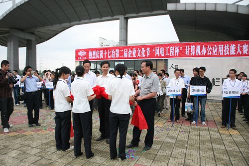 仪式上,公司总工程师尹万云、风电公司经理高胜勇和市总工会经济技术部主任李开甫为比赛举行了剪彩。