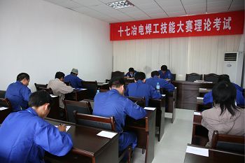 仪式后,参赛选手分成四组,开始了紧张有序的比赛。比赛现场焊花飞溅、群情振奋。这次电焊工技能大赛分为两个部分:一是进行理论测试,时间为1小时。理论考试题目类型分判断题、单项选择题、多项选择题。出题难度以高级工应知为标准。二是实际操作比赛,时间为2个半小时。比赛内容分为:用焊条电弧焊对板材进行仰焊、用CO2焊对管材进行垂直固定焊、用全氩弧焊对管材进行水平固定焊。整个比赛进行了两天时间。