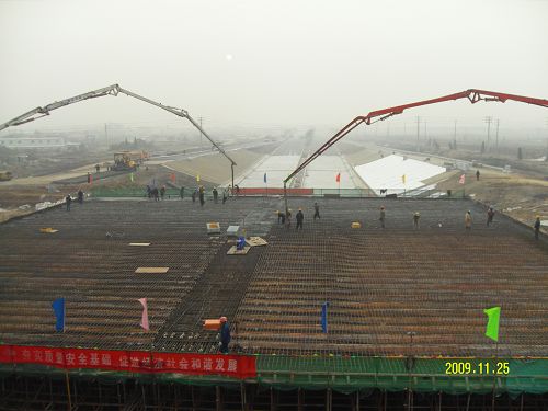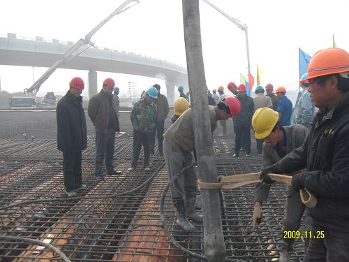 1125上午8时,随着第一车砼到达施工现场,十七冶南京滨江大道1.1标项目淮河路跨线桥空心板梁砼浇筑开始。历经30个小时的昼夜奋战,至1126下午2点,1600m3砼用量的空心板梁一次性浇筑成功,标志着该项目结构主体工程已接近尾声。