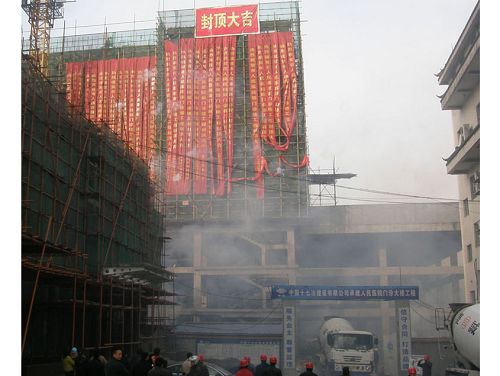 124上午918分,由十七冶工程管理公司承建的马鞍山市人民医院门诊大楼工程顺利实现主体结构封顶。马鞍山市市立医疗集团、市人民医院领导,十七冶工程管理公司副经理戴长虎,人民医院门诊大楼项目部经理奚宽金等有关部门负责人参加了封顶仪式。