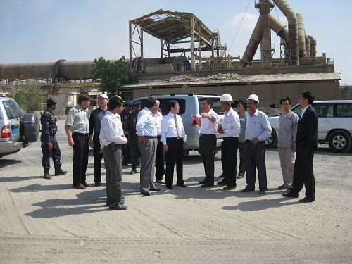 20091230中国驻也门大使刘登林及经商处参赞原高强一行,到十七冶巴吉尔水泥厂项目工地检查指导工作。