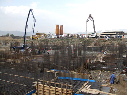 也门首都办公楼项目大体积楼板混凝土浇筑成功