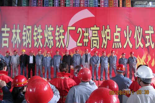 928上午928分,吉钢炼铁厂2#高炉隆重举行点火仪式。吉林建龙钢铁公司总经理张贵磊等领导、中国十七冶集团公司副总经理唐灶荣、冶金工程技术公司经理范文刚以及吉钢项目经理部负责人等出席了点火仪式。
