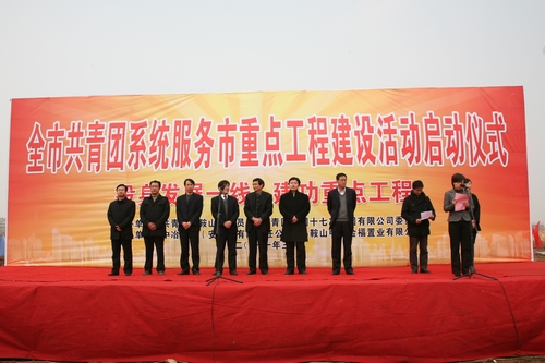 共青团安徽省委副书记周密,马鞍山市副市长龙李海,十七冶集团公司副总经理方荣华,总部机关相关部门、二级公司、项目公司领导魏致家、王振堂、陈鑫慧、李静及市青年志愿者代表、公司青年代表、工地建设者共计300余人参加了启动仪式。启动仪式由团市委书记田昕主持。
