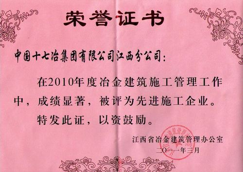 江西分公司获江西省冶金建设“先进施工企业”称号