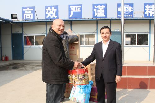 1219下午,公司党委书记、董事长王建国来到今年底交房的马鞍山市7个保障性住房项目施工现场,慰问已经连续日夜奋战了一个多月的广大一线员工们。公司领导喻世功、彭毅忠、方荣华和中冶置业(安徽)公司总经理王振堂陪同了慰问。