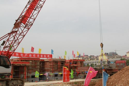 当天上午,施工现场彩旗招展,“热烈祝贺首批装配式住宅吊装取得圆满成功”的大红挂幅格外醒目,来自中冶置业(安徽)公司、物流与装备成套公司、工程技术服务公司和有关项目的负责人、吊装及相关人员汇集现场,翘首以待新产业启动仪式的到来。928分,随着中国十七冶集团总工程师尹万云一声令下,现场鞭炮齐鸣大吊车缓缓吊起第一块叠合楼板,从而拉开了装配式住宅产业化技术在项目上实施的序幕。