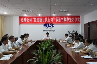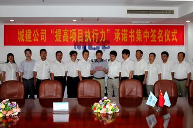 作为公司第三届企业文化节重要活动之一,按照《关于举行“提高项目执行力”承诺书集中签名仪式的通知》要求,各二级公司领导班子成员、各项目经理部班子成员及四部一室主要负责人,分别在本单位或项目经理部集中举行的签名仪式上作出了郑重承诺。