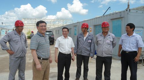 54,王建国董事长与中钢集团董事长邹若齐视察了CSVC公辅工程施工现场。王董事长肯定了项目部前期的工作,并主持召开了项目工作会议。王董事长强调,项目部要做好质量管理策划,以精品标准打造工程质量;根据越南当地情况做好各项预案,确保安全生产零事故;落实ERP网络管理的应用,加快项目信息化建设;加强企业文化建设,提升公司品牌影响力;要在精细化管理的基础上逐步实现管理层次化。