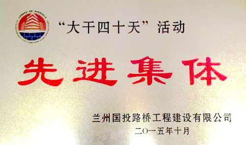 兰州国投路桥工程建设有限公司于819日提出项目建设“保安全、促工期、抓质量、抢进度,大干快干四十天”活动任务。项目部积极响应业主号召,精心组织、周密筹划,积极克服任务重、难度大、工期紧等诸多不利因素,将任务目标细化分解;强化施工现场安全生产的监督、检查,把好安全质量关;细化施工方案,倒排工期,确保整体工程施工有序推进,在业主多次安全、质量、进度跟踪检查中综合排名均位列前茅,受到了业主及监理方的一致好评,并在西线4个标段中获得第一名,被评为“先进集体”,获得业主的表彰和奖励。