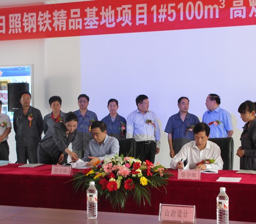 916日上午,由中国十七冶集团山东分公司承建的日照钢铁精品基地项目1#5100高炉工程正式签约并举行开工仪式,山钢集团日照公司总经理陈向阳,山东省冶金设计院董事长姚朝胜,中国十七冶集团副总经理蔡进,冶金公司经理王德林,山东分公司副经理吴海华等出席仪式。