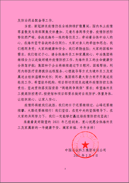 致中冶全体海外员工及家属的一封信