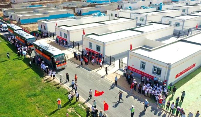 该项目位于兰州新区现代农业公园内,建设内容包含农宅、配备道路工程、社区服务中心、医疗卫生服务站、养老中心、幼儿园、九年一贯制学校等内容。此次搬迁安置对象为甘肃省甘南州舟曲县180户地质灾害避险群众,计划分三批次搬迁入住,此次搬迁的第一批60户共计295人,第二批次60户295人计划8月10日达到,第三批次60户291人计划8月13日到达。