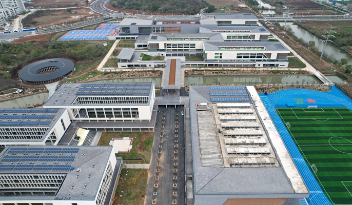 本工程位于马鞍山市经开区银塘路东侧,总建筑面积约13.4万平方米,由综合服务楼、教学楼、生活楼、食体综合楼、红星书院及附属建筑等15个单体组成,配套400米跑道及标准化球场,道路、变电站、给排水、消防、校园绿化、生态停车场等附属设施。校区为寄宿式高中,共计72个班,满足3600人入学。