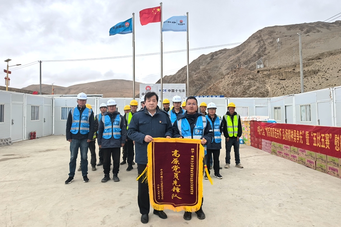 慰问现场,刘安义董事长为项目团队授予“高原党员先锋队”光荣旗帜,代表公司党委对项目团队坚守偏远高原地区、全力推进灾区重建工作表示感谢与肯定,详细询问了职工们在高原上的工作、生活和身体情况,叮嘱大家保重身体。刘安义董事长表示,项目全体参建人员艰苦不怕吃苦、缺氧不缺精神,克服低气压、低含氧、高寒、大风等恶劣作业环境,关键时刻站得出、冲在前、顶得上,充分展现了十七冶人“不讲条件、不惜代价”的援建担当,勉励团队继续发扬高原艰苦奋斗精神,为雪域高原建设贡献十七冶力量。