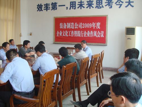 5月11日上午,装备制造公司召开2009年企业文化工作暨践行企业作风会议。公司领导班子成员、厂、部门负责人共32人参加。会议由公司副经理陈夕潮主持。
