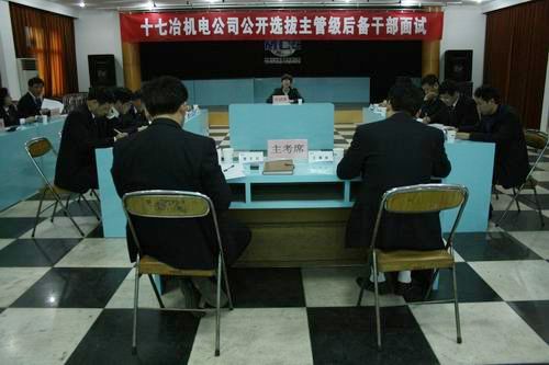 本次面试分工程管理、经营管理、技术管理和综合管理四个类别,由十七冶集团公司相关部门及机电公司相关领导等12人担任评委团。