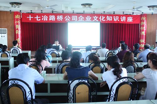 94上午,路桥公司举办了企业文化知识讲座,邀请建设公司组织文化部韩伟群部长授课,路桥公司领导程大友、吴同生、谢兰敏等公司班子成员以及员工60余人参加了这次企业文化基础知识的培训。