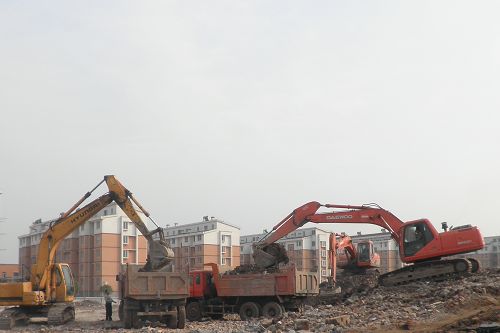 金安小区安置房是马鞍山市城市建设的配套工程,被市委、市政府列入民生工程组织实施。场地平整工程是整个金安小区工程的首要节点,项目部对此高度重视,发扬“高效严谨、精细务实”的企业作风,精心组织,周密安排,工地上共投入3台挖掘机、3台推土机、11台土方车,每天晚上都加班干到12点,每天平均挖运土方量8000方,目前已累计挖运土方量5万方,确保在15天内将场地平整工程全部完工。