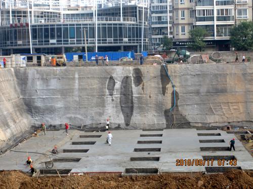 9月16日下午,由城建工程技术公司承建的蚌埠金融中心工程行政服务楼1#区域砼垫层顺利浇筑完成。 金融中心地下室底板总面积17000平方米,按子项划分为A、B、C三个大区和一个行政服务楼区。此次浇注的垫层位于金融中心深基坑的西北角,面积约1100平方米。垫层开始浇注,拉开了地下结构施工的序幕,为确保春节前地下室施工到地面创造了条件。