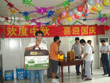 9月16日晚,路桥公司南京滨江大道项目部电视厅内张灯结彩,彩球飞扬,一条条彩带在灯光的辉映下闪烁着耀眼的光芒,不时传出一阵阵欢歌笑语,显得热闹非凡,项目部工会在此正举办一场“欢度中秋·喜迎国庆”摸奖活动。 在此期间,项目部还组织了篮球赛、足球赛等文体活动,通过开展丰富多彩的文化娱乐活动,使奋战在该项目的员工感受到集体的温暖和家的温馨,增强了项目团队的凝聚力。