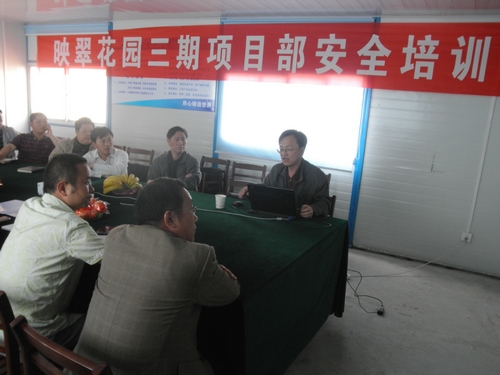 425,雨山区映翠花园三期保障性住房工程项目部,举办了一期安全管理培训班。中冶金福置业有限公司经理陈鑫慧和项目部管理人员及各施工单位安全负责人、安全员30余人参加了培训。