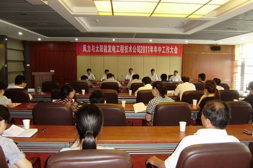 74上午,风力与太阳能发电工程技术公司召开了年中工作会议。公司领导班子、各工程处、项目部经理和机关全体管理人员参加了会议。