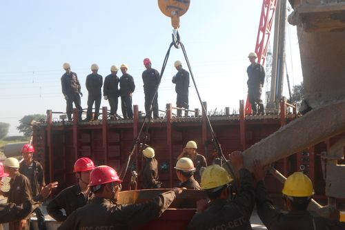 T梁预制是整个施工节点的重中之重,是能否顺利完成整个项目工期目标的关键。项目部牢固树立“高效严谨、精细务实”的企业作风,严格按照规范施工,技术人员科学协调操作手、机械、设备的相互配合,严把混凝土最佳配合比、浇筑、振捣、收面等工艺环节,确保了首件T梁的浇筑获得圆满成功。