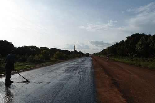 科特迪瓦130项目进行沥青透层试验段施工