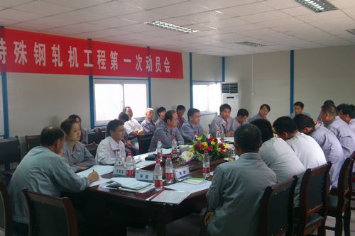 715,为了进一步推动莱钢特殊钢轧机工程的快速进行,山东分公司莱钢特殊钢轧机项目召开了第一次工程动员大会。分公司领导、项目部管理人员及各参建单位负责人参加了会议。