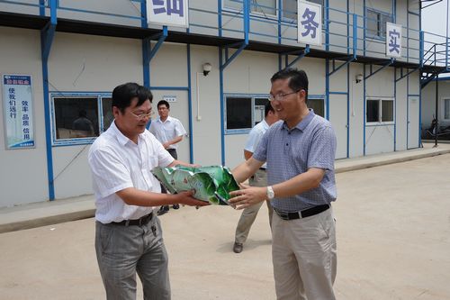 719上午,马鞍山市经济技术开发区管委会副主任刘方文和重点局局长王良清带领慰问组,来到银塘安置房项目工地慰问在高温下坚持作业的施工人员。