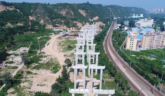 崤函大道项目位于河南省三门峡市,全长11.96公里,红线宽度60米,为城市主干道,设计时速为50公里。中国十七冶承建长度为6.961公里,建设内容包含大桥四座、互通立交一座、匝道桥一座。青龙涧1号桥全长947米,桥面净宽为23-26.6米,全桥共18跨4联,30米T梁180片,下部结构桥台采用桩式台/座板式台。本项目是三门峡市“十四五”规划实施的一项基础性、关键性工程,对拉大三门峡城市框架、完善城市功能、建设生态宜居城市,推动经济社会转型发展具有关键性支撑作用。