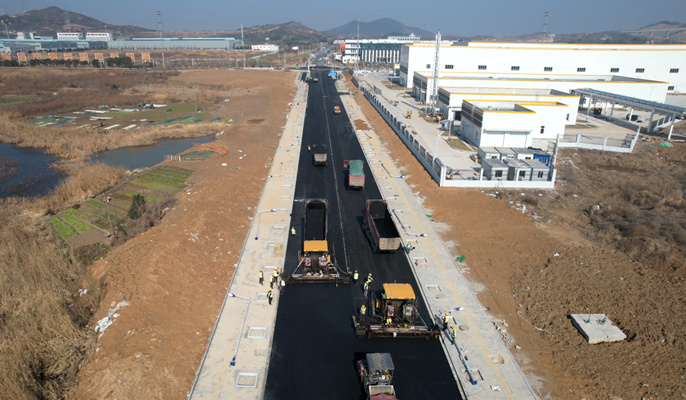 1月13日,中国十七冶房屋分公司承建的马鞍山经开区银塘单元路网建设项目同心路沥青摊铺顺利完成。