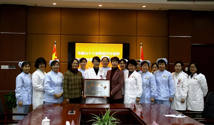 12月30日下午,安徽马鞍山市妇联党组书记、主席王彬,调研员袁锋等来到十七冶医院,为内分泌科荣获安徽省“巾帼文明岗”进行授牌。