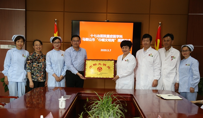 5月7日下午,马鞍山市总工会、马鞍山市妇联来十七冶医院为重症医学科马鞍山市“巾帼文明岗”授牌。