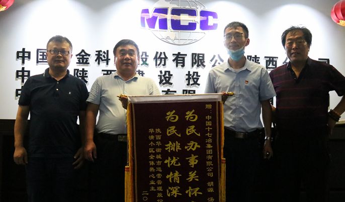 8月7日,中国十七冶集团陕西分公司收到陕西华衡城市运营管理有限公司及西安华清小区全体居民代表送来的一面锦旗。锦旗上书“为民办事关怀备至,为民排忧情深似海”两句话,表达了对陕西分公司积极参与华清路雨污水排放管道抢修的诚挚谢意。