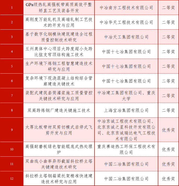 日前,中国质量协会公布了2023年度质量技术奖获奖名单,中国十七冶3项成果从全国各行各业1090项成果中脱颖而出,均荣获二等奖,年度获奖数量位列中冶集团(8项二等奖)首位。