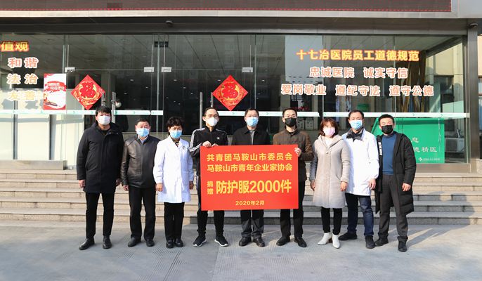2月5日下午,马鞍山团市委书记马鑫带领部分工作人员,将2000套三级防护服捐赠给十七冶医院,帮助医院缓解了燃眉之急。