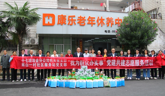 在重阳节来临之际,10月11日,中国十七冶集团冶金工程技术分公司机关党支部联合雨山一村社区服务站党支部在雨山康乐老年休养中心开展“我为群众办实事”党建共建志愿服务活动,为老人们送去节日问候和党组织的关爱。