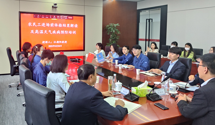 培训会上,授课老师结合十七冶项目日常作业环境情况,深入浅出地分析了包括物理检查、化验检查、心电图等在内的体检结果对项目作业工种选择、诱发职业病的影响,并从夏季作业的特点、中暑症状、中暑的原因分析、夏季高温作业安全要点、中暑的预防和急救知识等方面进行详细讲解。此次培训理论结合实际,进一步提高了大家对职业健康、防暑降温工作的认识,增强了项目部的防范意识和应急处置能力。