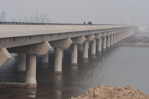 十七冶承建的天津滨海新区海景大道南延线工程独流减河特大桥项目工程合同工期18个月。该桥全宽25m,桥梁全长1084.66m,桥梁建筑面积约27116.5m。桥梁上、下行桥结构分开,半幅桥梁宽度为12.5m。