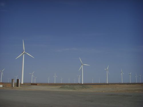 处,风电场处在人烟稀少的戈壁之中,是亚洲最大风场和世界四大风能基地之一。